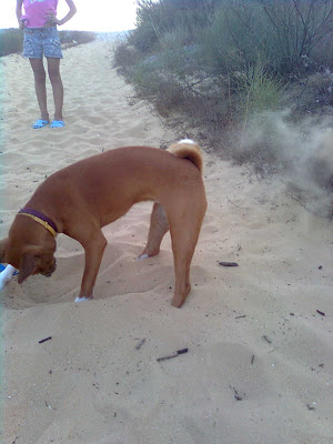 классные фото Альки! мне так нравиться,как баськи усердно любят норки капать!! наши вечно это делают,и едят корешки.интересно,а Алька чё искала в песке  ;D ;D