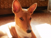 "Кобель Виски. Метис басенджи, 5 лет. Скорпион по гороскопу. Цвет рыжий с белым. Отличие от басенджи – крупнее и хвост не закручен в узелок. Аллергия на свинину. Линька 2 раза в год. Очень игривый, требует много общения. На поводке ведет себя, как охранник – не любит чужих собак. Играет с детьми. Команды: сидеть, лежать, лапу, голос, фу… Умён, но иногда прикидывается… Очень самостоятельный на даче – уходит на день но всегда возвращается. Здоров. Прививки. В квартире живёт в будке, любит спать куда-нибудь спрятавшись. Ест сухой корм Dog Chow. Любит косточки из жил. Регулярная профилактика глистов. Взяли в 4 недели за 2 года до появления детей. Сейчас представляет угрозу как аллерген для старшего ребенка, боимся за младшую. Пёс любИм, но дети дороже…